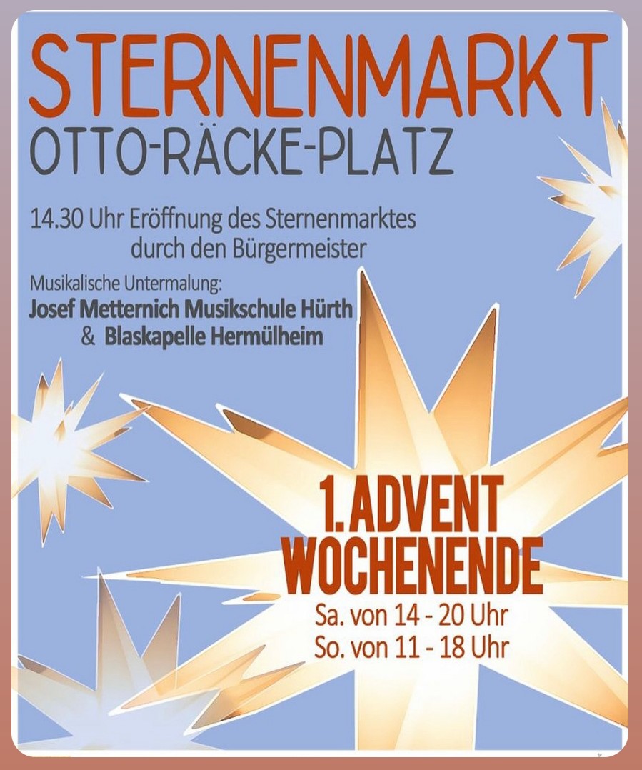 Am ersten Adventswochenende findet wieder der Sternenmarkt auf dem Otto-Räcke-Platz in Hermülheim statt.